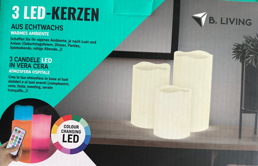 3 LED Echtwachs-Kerzen